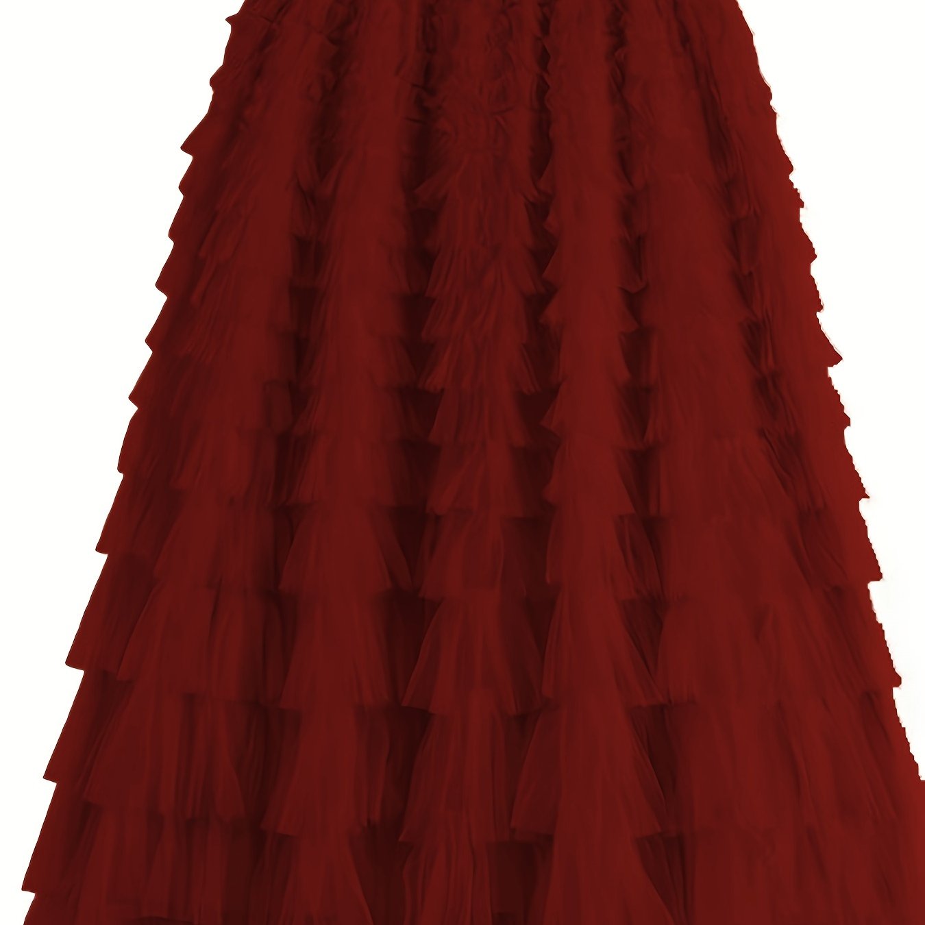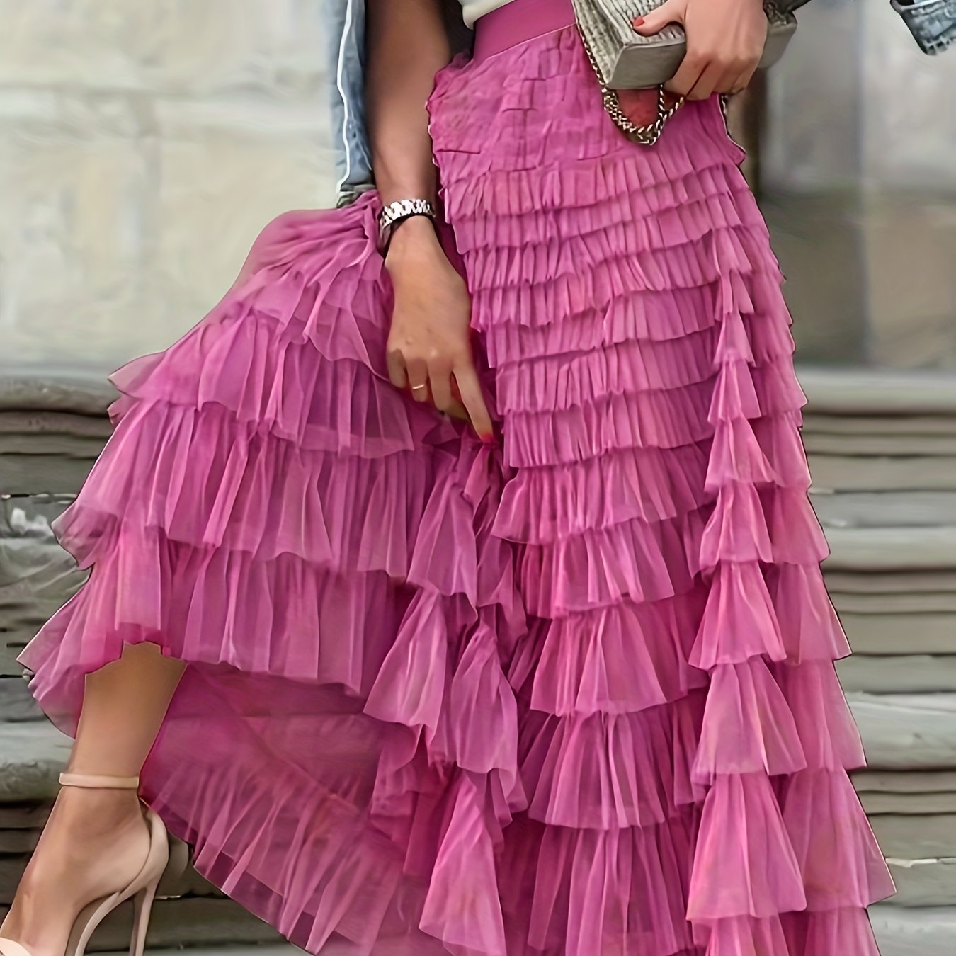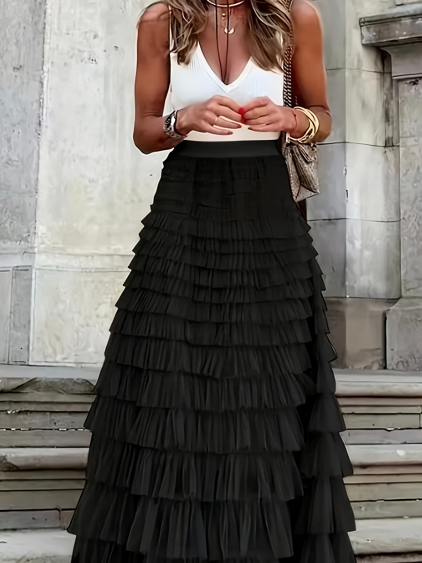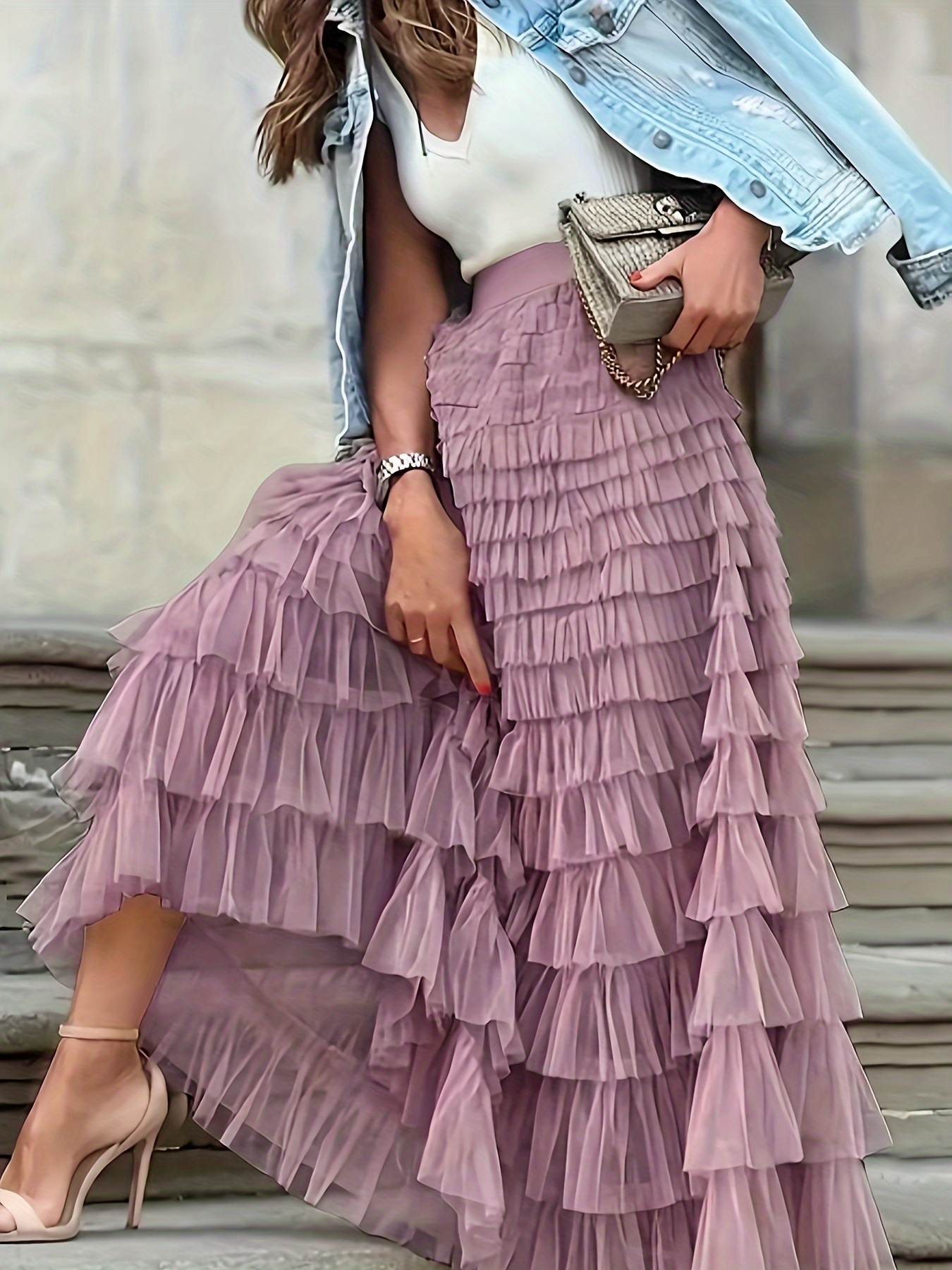 Mesh Layered Hem Skirt, Boho High Waist Skirt, Women's Clothing
